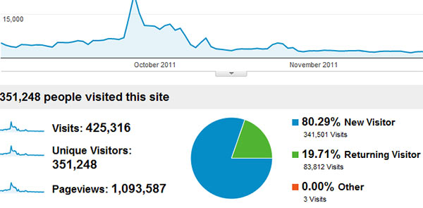 | Page loads and Unique visitor status of 2011 Durga puja month | |||||||||||||||||||||||||||||||